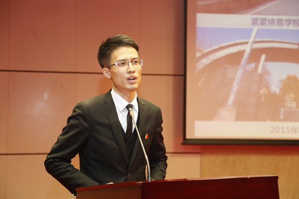 宣传片播放结束后,曾赴都安挂职的学生工作处干部马宁与校团委副书记孙铭晗分别围绕“担当”、“使命”的主题讲述了在都安开展定点扶贫工作的所见、所闻、所思、所感,生动展现了我校挂职干部在扶贫一线的风采。研究生支教团成员代表胡媛、赵加正、钟心分别围绕“青春”、“筑梦”、“大爱”的主题讲述了在都安开展支教工作的经历与感受,彰显出我校研究生支教团成员致力于“教育扶贫”的决心和信心。