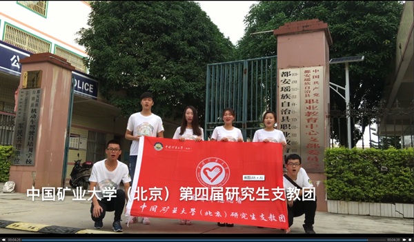 播放现任挂职干部谢均岩、王庆多,正在都安开展支教的第四届研究生支教团同学为宣讲会录制的视频