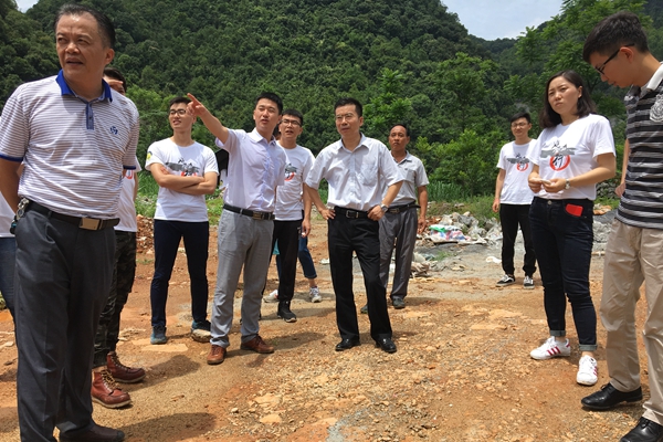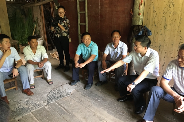本网讯 6月29日,中国矿业大学(北京)党委副书记王忠强、团委书记张蕊,以及10名学生党员代表来到学校定点帮扶的广西都安瑶族自治县龙湾乡琴棋村开展“精准扶贫”主题党日活动。都安瑶族自治县人大常委会副主任梁林、学校派驻到广西都安挂职县长助理的谢均岩和出任琴棋村驻村党组织第一书记的孙铭晗陪同走访调研,并与琴棋村村两委干部和党员代表一同参加了党日活动。