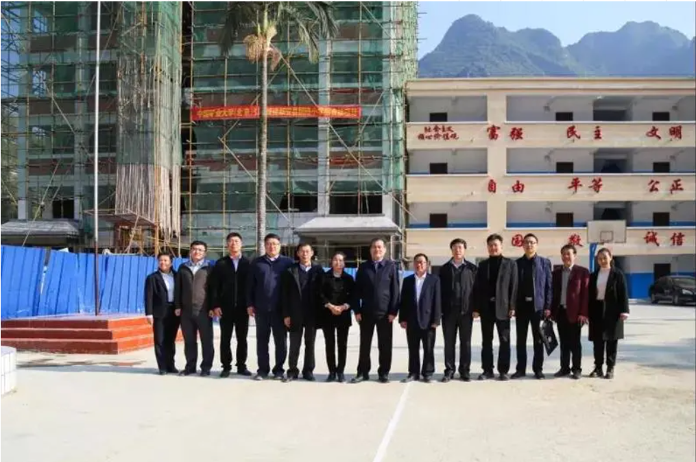 学校积极推进教育扶贫。2019年、2020年,校党委发动社会资源为都安县引进帮扶资金400万元,援建了2栋小学宿舍楼,受益学生近500人,有效解决了都安县部分村镇集中办学、居住安全等问题。