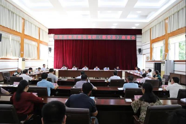 在座谈会上,钟登华指出,教育脱贫是一项政治任务,义务教育有保障是“两不愁,三保障”的重要目标任务,各相关部门要提高政治站位,进一步强化对教育脱贫攻坚工作的认识。要确保如期完成教育脱贫攻坚的核心任务,使“发展教育脱贫一批”成效更加显著,阻断贫困代际传递的作用更加有效,教育扶贫长效机制更加完善。要聚焦问题补短板,加强教师队伍建设,进一步加快推进教育信息化建设,缩小城乡教育差异,共享优质教育资源。