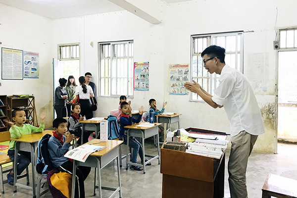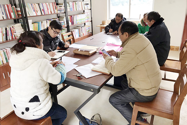 2018年1月,谢均岩带领中国矿业大学(北京)研究生支教团的同学们布置琴棋村图书室和党员活动室