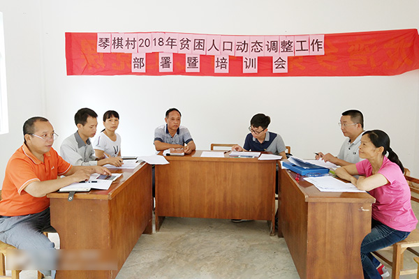 2018年6月,谢均岩带领村两委成员和驻村工作队员召开贫困人口动态调整工作会议