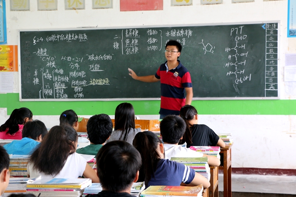 职教中心没有多媒体教学设备,上课完全靠板书教学。陈奂说,我仍记得在黑板上认真写下的第一个字,虽歪歪扭扭,但内心神圣而感动。现在手上茧子磨出来了,字也练出来了。职教中心的师资紧缺,陈奂一周要上15节生物课,每天早上带学生跑操,晚上盯着学生晚自习,工作着实辛苦。陈奂却总是举重若轻,他说,现在做什么工作不辛苦啊!我们年轻,咬咬牙就挺过来了。