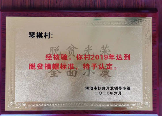 经过我校在琴棋村担任过驻村第一书记的孙铭晗、谢均岩两位同志及现任驻村第一书记栾利建的共同努力和村民们的大力支持与配合,琴棋村的扶贫工作取得了良好的进展。经河池市扶贫开发领导小组认定,2019年11月琴棋村实现脱贫摘帽。