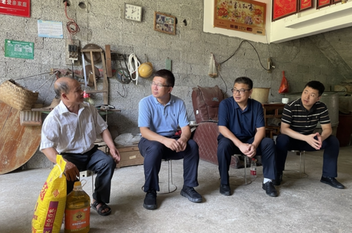 座谈会后,校党委副书记安宇赴都安县龙湾乡琴棋村走访调研。安宇鼓励挂职干部要牢记使命、敬业奉献,扎实推进实施乡村振兴战略,充分发挥村民内动力,解决好“三农”问题,带领村民走向勤劳致富的美好生活。我校挂职干部、琴棋村驻村第一书记刘昌磊对学校一行的到访表示感谢和欢迎,琴棋村村委会主任蓝敏介绍了琴棋村乡村振兴工作开展情况,龙湾乡党委委员、组织委员唐秀昭对学校接力帮扶琴棋村表示感谢,原琴棋村党支部书记黄炳康回忆了与学校派驻琴棋村历任驻村第一书记开展工作的情况,并对学校帮助琴棋村改变村容村貌、助力村民产业发展表示感谢。琴棋村党员、群众代表参加了座谈。会后,安宇走访慰问了琴棋村村民代表。