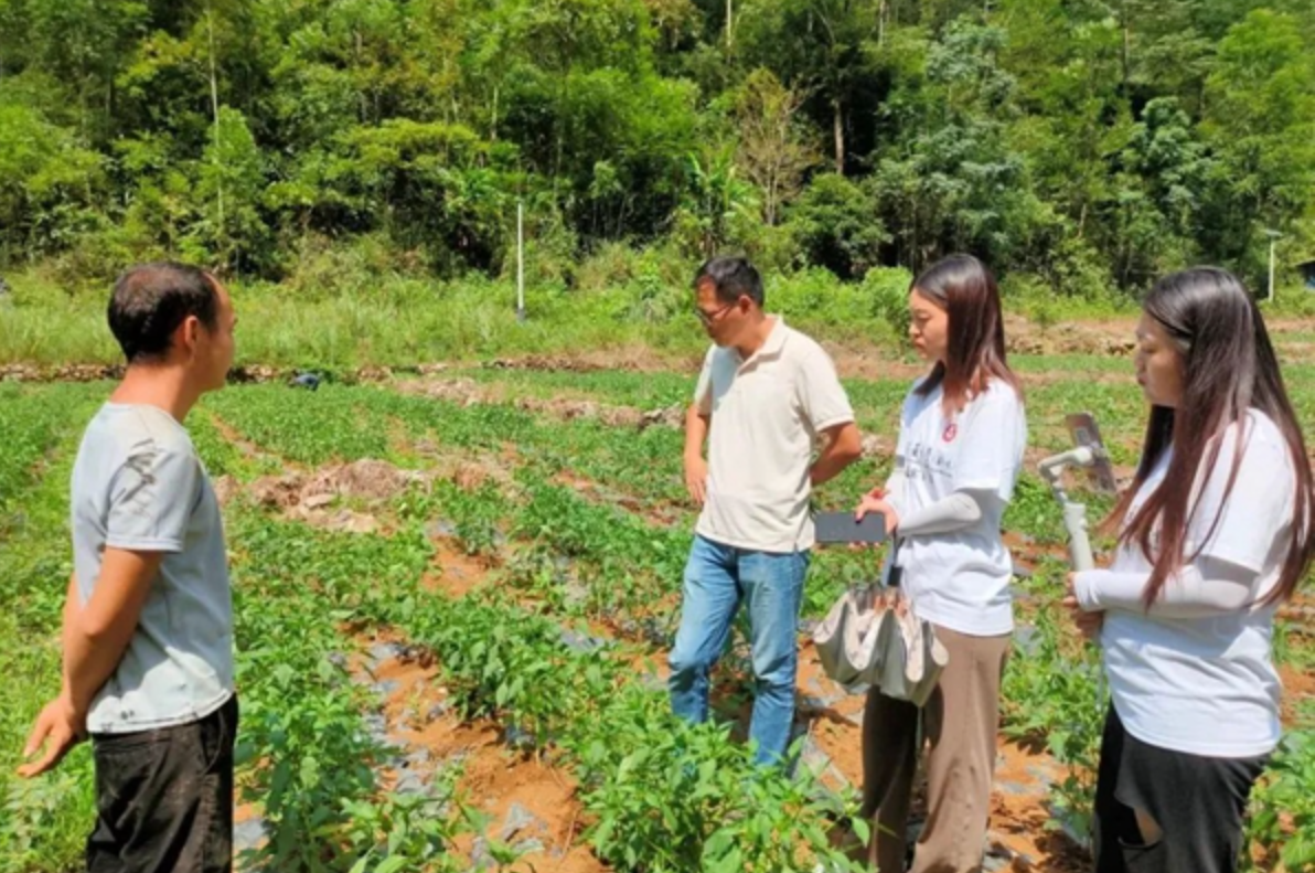 实践团实地走访了辣椒种植基地,并和辣椒基地的经营人韦必棵进行了深入交流。韦必棵介绍道,村合作社将土地低价租给他,计划在取得一定收益后,将辣椒种植推广至其他村民,带动农民增收致富。实践团认真了解辣椒基地的具体运营方式和市场行情等,分析辣椒种植的可行性和预计收益,并与驻村第一书记和经营人积极讨论,交换想法。