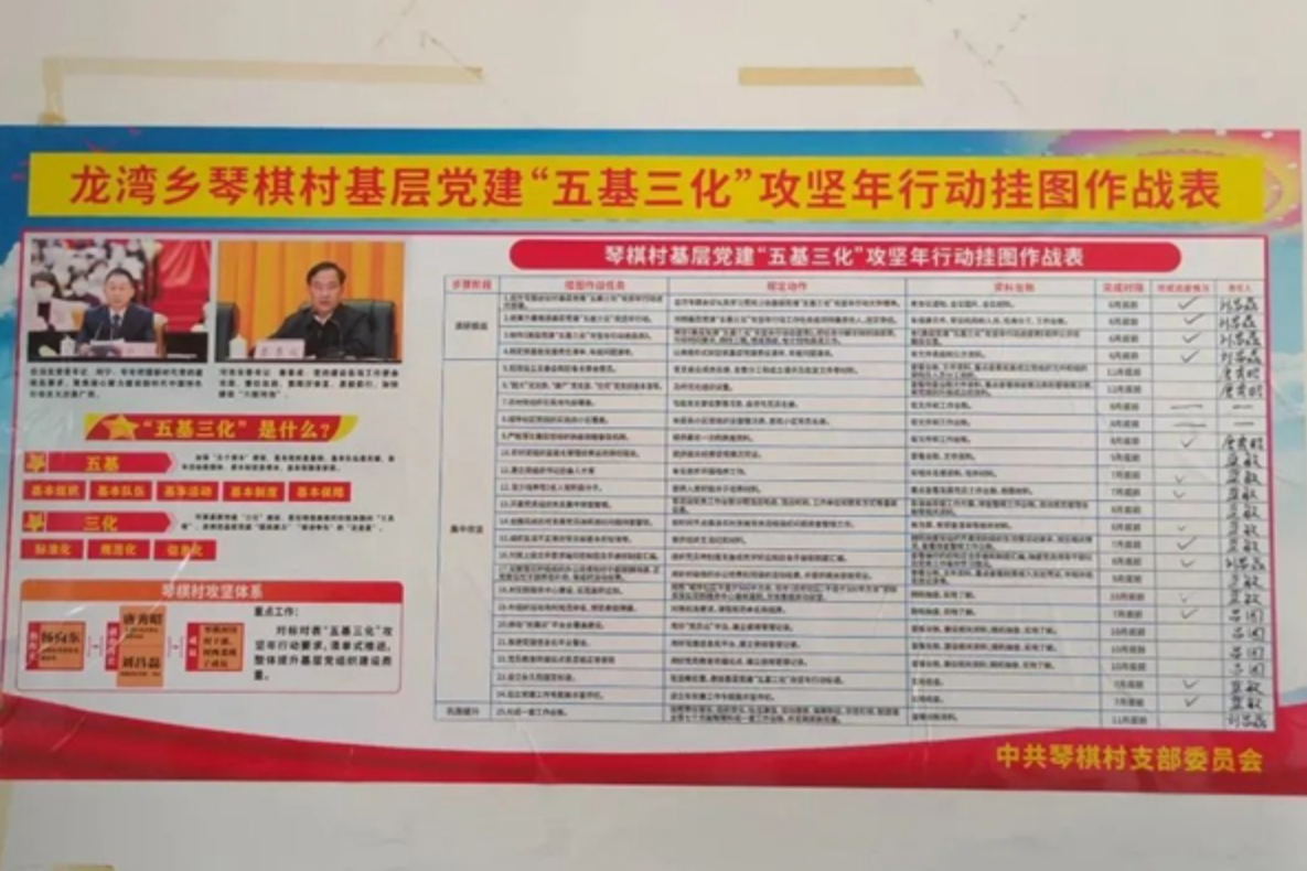 一是进行实地参观,在村干部的带领下参观了琴棋村党建文化展示区,详细记录琴棋村内的党建公示材料。