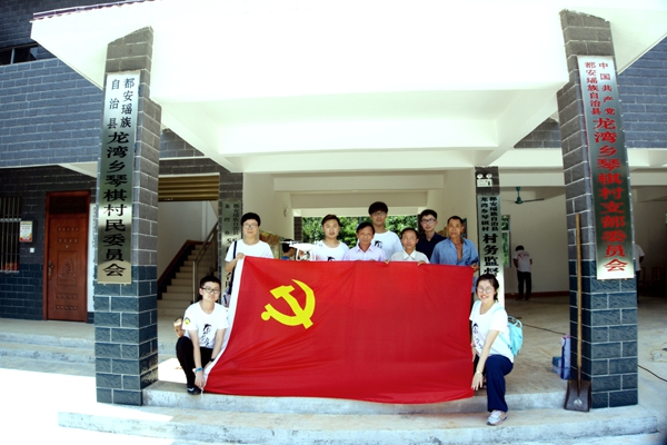 本网讯 按照我校2018年定点扶贫广西都安瑶族自治县的相关工作要求,7月16日至19日,学校选派师生代表赴广西都安县龙湾乡琴棋村开展“三下乡”暑期社会实践活动,提供科技、文化、法治宣传等方面的帮扶。实践团由党委组织部、校团委、地测学院、校大学生艺术团的师生代表组成。我校挂职干部都安县委常委、副县长王庆多和都安县龙湾乡琴棋村党支部第一书记谢均岩及都安县委组织部领导、龙湾乡领导、琴棋村干部等参与实践活动。