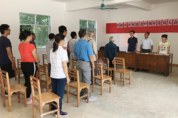 2018年7月1日,琴棋村召开庆祝建党97周年党员大会,谢均岩为全村党员讲党课