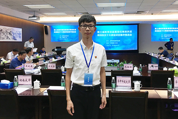 2018年9月19日,谢均岩参加第三届教育部精准扶贫精准脱贫十大典型项目推选会,汇报我校定点帮扶琴棋村发展壮大村集体产业项目