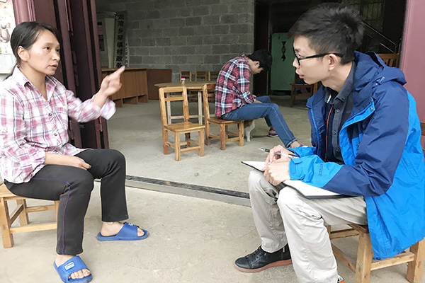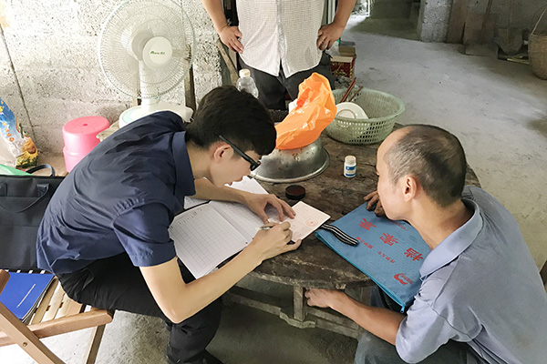谢均岩入户开展精准扶贫工作,向贫困户介绍扶贫政策
