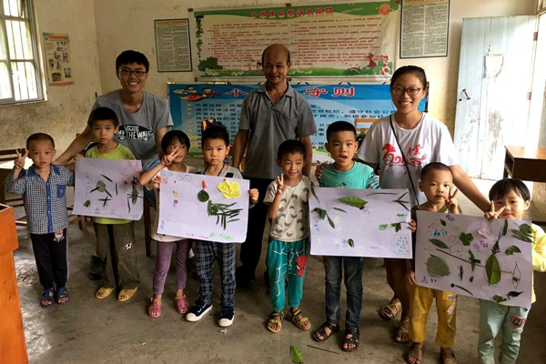 由于都是留守儿童,琴棋小学的学生平时都在学校里吃住,吃的是青菜叶子加一点肉末,甚至没有餐桌。睡觉也没有床铺,只能是木板床上加一凉席,没有褥子和被子。可他们依然吃得香、睡得熟,自己刷碗、自己叠被,懂事可爱,让人心疼。支教团老师给孩子们上了一堂生动的植物贴画手工课,孩子们自己在校园里寻找需要的植物原材料,靠着自己丰富的想象力贴出一个美好的世界,有花、有蝴蝶、有太阳、有笑声,手工作品在欢声笑语中完成得极为出色。