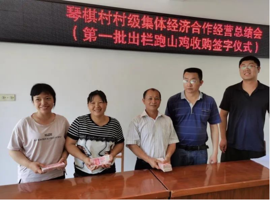 琴棋村第一批跑山鸡于2019年11月11日开始饲养,第二批跑山鸡于2020年1月8日开始饲养,饲养模式由纯集体投入转变为村集体、贫困户合作经营,即:村集体出钱买40天的鸡苗交由贫困户饲养,贫困户承担饲养成本,4个月后,村集体以不低于65元/只的价格保底回购跑山鸡,保证贫困户每只鸡在扣除饲养成本后纯利20元/只,饲养500只出栏,4个月的时间,纯收入1万元左右。