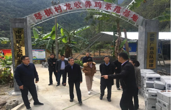 2019年12月12日至14日,我校党委书记徐孝民、副校长赵峰华一行到我校定点帮扶的都安县调研和落实扶贫工作。在龙湾乡琴棋村走访了贫困户,并代表学校全体师生送上慰问品。同时,党政办公室党支部、党委组织部党支部还与琴棋村党支部开展了党建“结对子”工作,共同推动定点扶贫与党建工作有机融合。