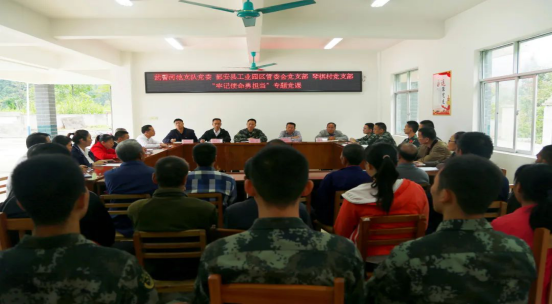2019年10月25日,武警河池支队党委、都安县工业园区管委会党支部及琴棋村党支部学习“牢记使命勇担当”专题党课