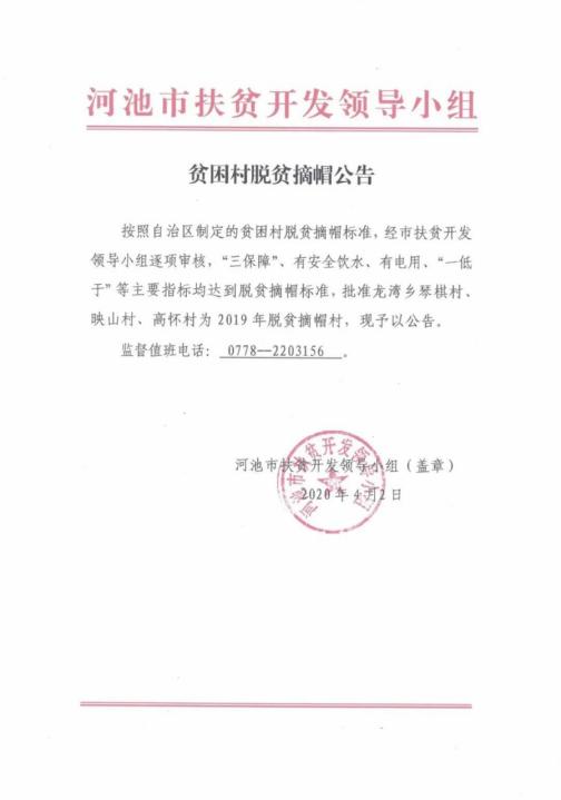2020年4月2日,河池市扶贫开发领导小组发布